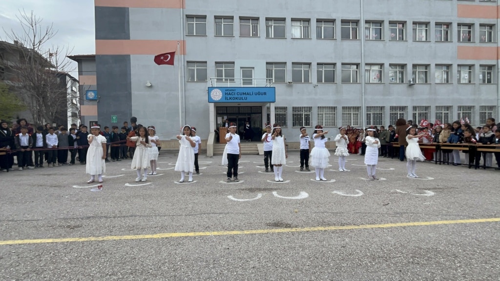 Okulumuzda 23 Nisan Ulusal Egemenlik ve Çocuk Bayramı coşkulu bir törenle kutlandı. Törende günün anlam ve önemini anlatan konuşmanın ardından öğrencilerimiz şiirlerini okudular. Sınıflarımız hazırlamış oldukları gösterilerini sundular. Gösterilerinin ardından yarışmalar yapıldı. Bu güzel ve eğlenceli töreni düzenleyen öğretmen ve arkadaşlarımıza emeklerinden dolayı teşekkür ediyoruz